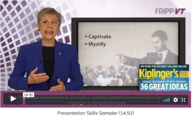 Fripp Virtual Training is designed to deliver the best content-rich, interactive instruction in preparing and presenting powerful, persuasive presentations. Become a great presenter easily, conveniently, quickly with Fripp Virtual Training.